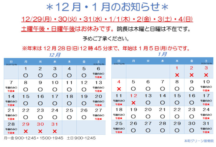 | 9:00〜 12:45 | ● | ● | ● | ● | ● | ● | ● | ✕ |
